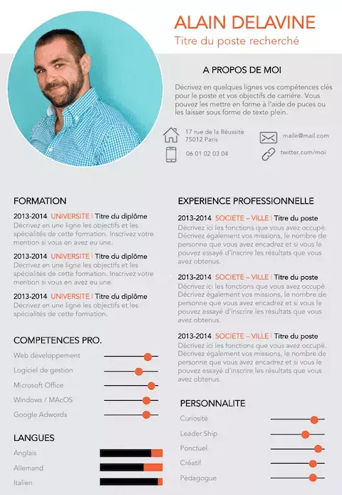 Un beau pavé de texte s’affiche en haut de ce CV et vise à attirer l’œil du recruteur. Mais surtout, il vous permettra de décrire votre parcours et vos ambitions pour le futur poste auquel vous postulez. Ce premier paragraphe doit service d’espace publicitaire pour décrire vos compétences clés. Par railleurs, la structure du CV permet, sans trop de difficulté, de décrire vos anciennes missions et les résultats obtenus lors de vos précédentes expériences. De cette manière, le recruteur pourra facilement évaluer votre candidature. Un beau CV qui s’adapte à tous les profils séniors et managers.